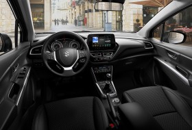Nowy S-CROSS oferuje nie tylko solidny wygląd, ale też wyposażenie zaprojektowane pod kątem najwyższego komfortu podróżowania. Duża przednia szyba i panoramiczny szklany dach potęgują wyjątkowe poczucie przebywania w przestronnym, wygodnym wnętrzu. Ergonomiczne fotele tapicerowane syntetyczną skórą mają na środku sploty, które podkreślają naturę SUV-a, który nie boi się przygód. Wysoką jakość materiałów we wnętrzu podkreśla szeroki kokpit utrzymany w trójwymiarowej stylistyce. O zaawansowaniu technicznym świadczy nowoczesny, 9-calowy ekran dotykowy obsługujący bezprzewodową łączność ze smartfonem i prezentujący informacje dotyczące stanu auta, a także pokrętło napędu ALLGRIP SELECT umieszczone w konsoli środkowej.